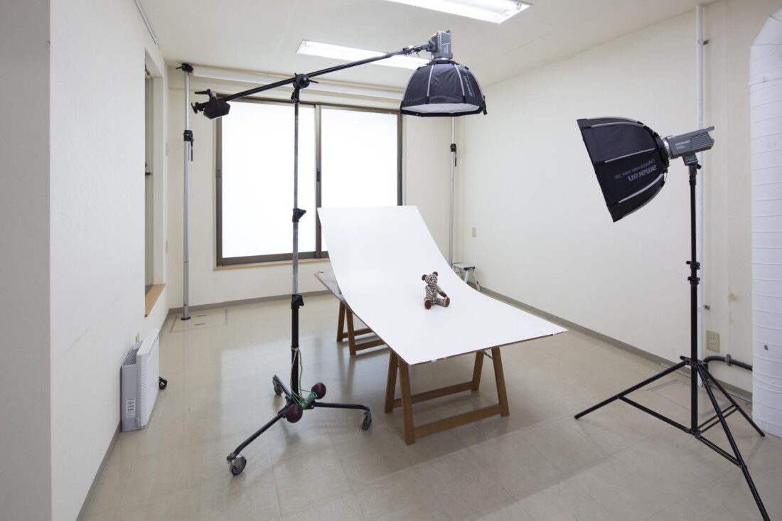 商品撮影に使用する撮影台(白デコラ板設置)もございます。
