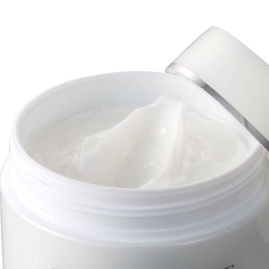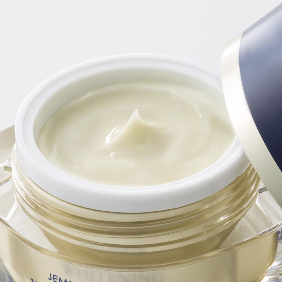 クリームの蓋を開けて、クリームがツノが立ったテクスチャー写真です。