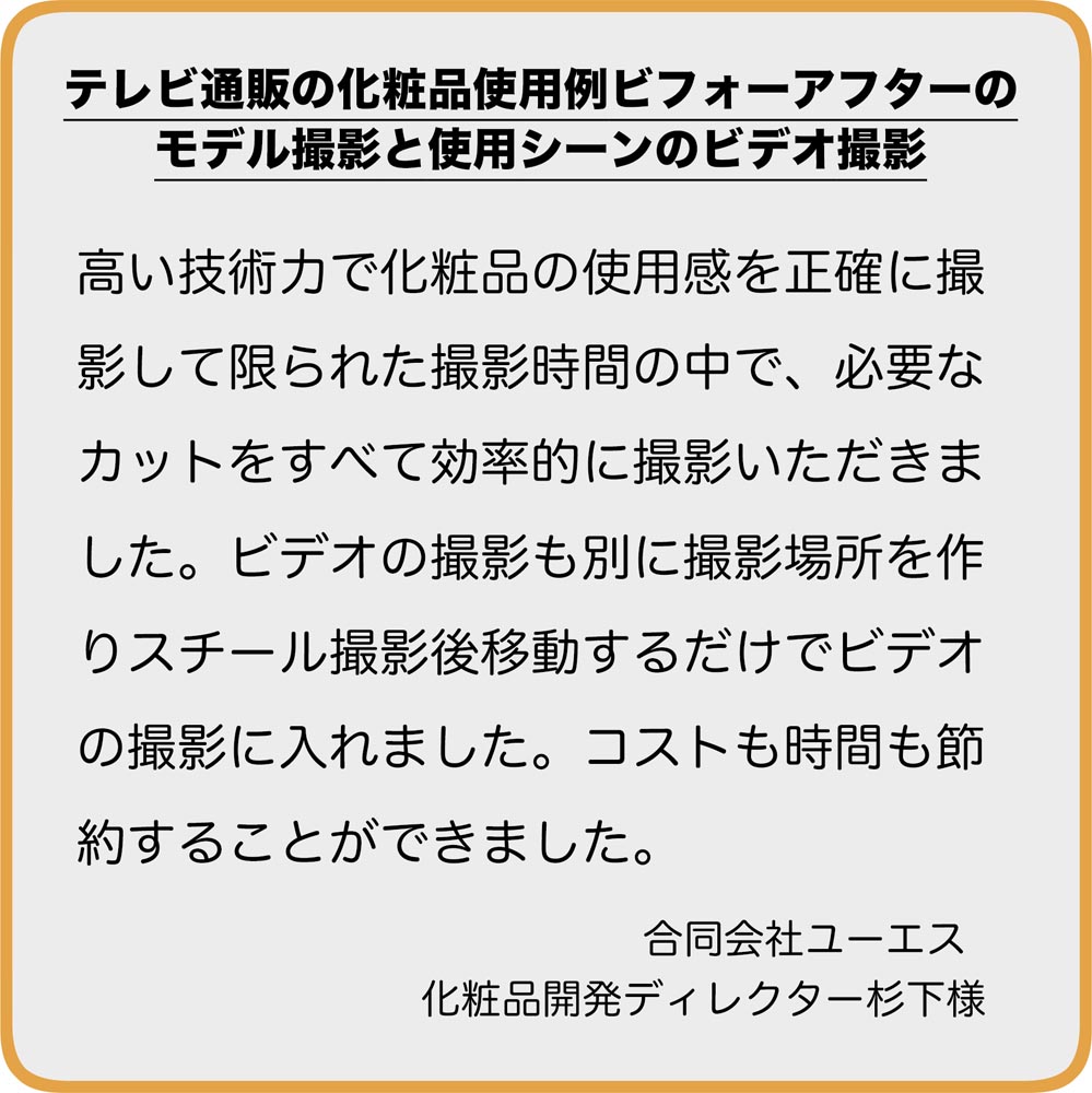 私たちは商品撮影だけでなく使用前使用後のビフォーアフターの撮影も行います