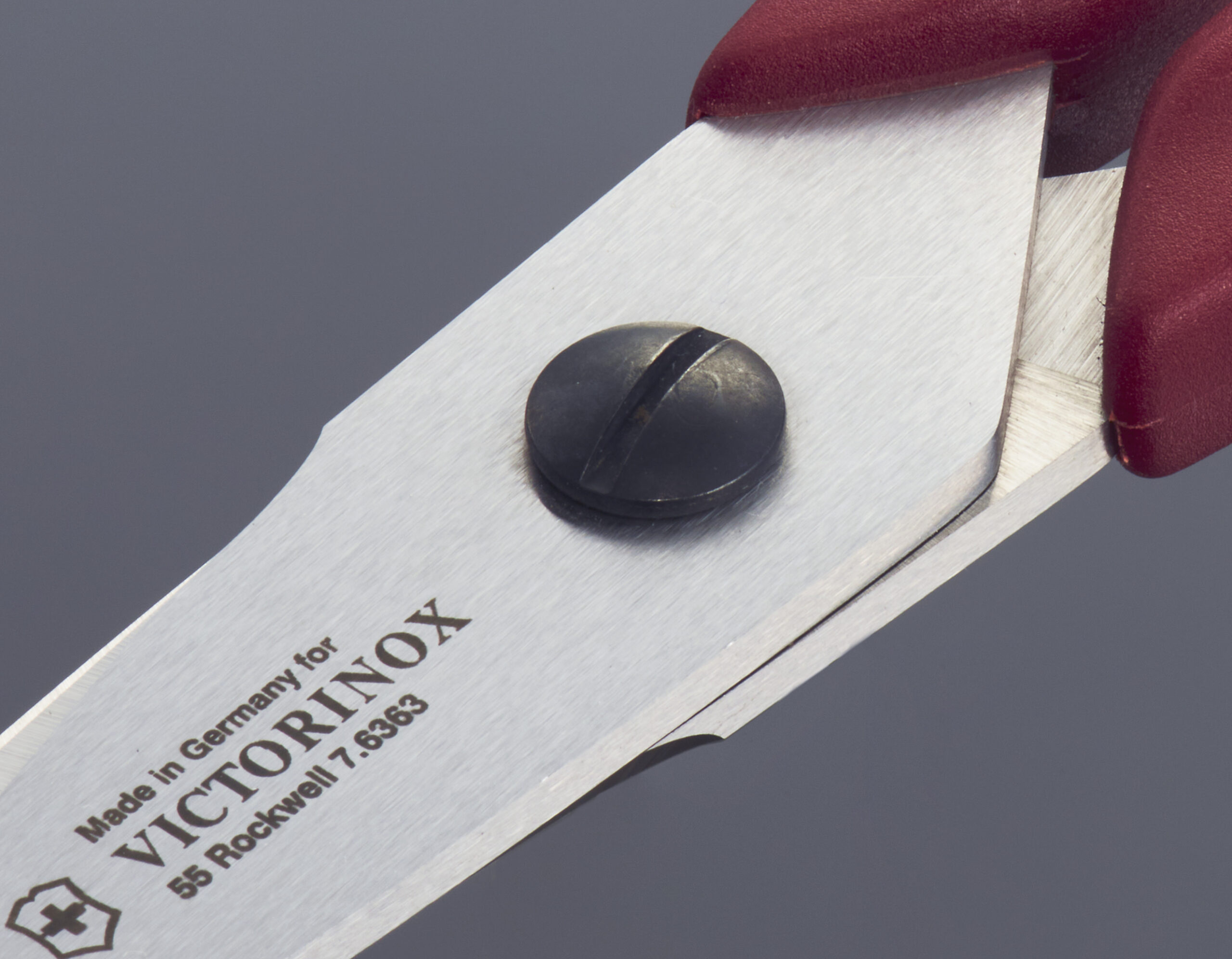 赤いハンドルとハサミの接合部分の焦点とネジの焦点は同じ焦点位置になります。(アップ画像参照)