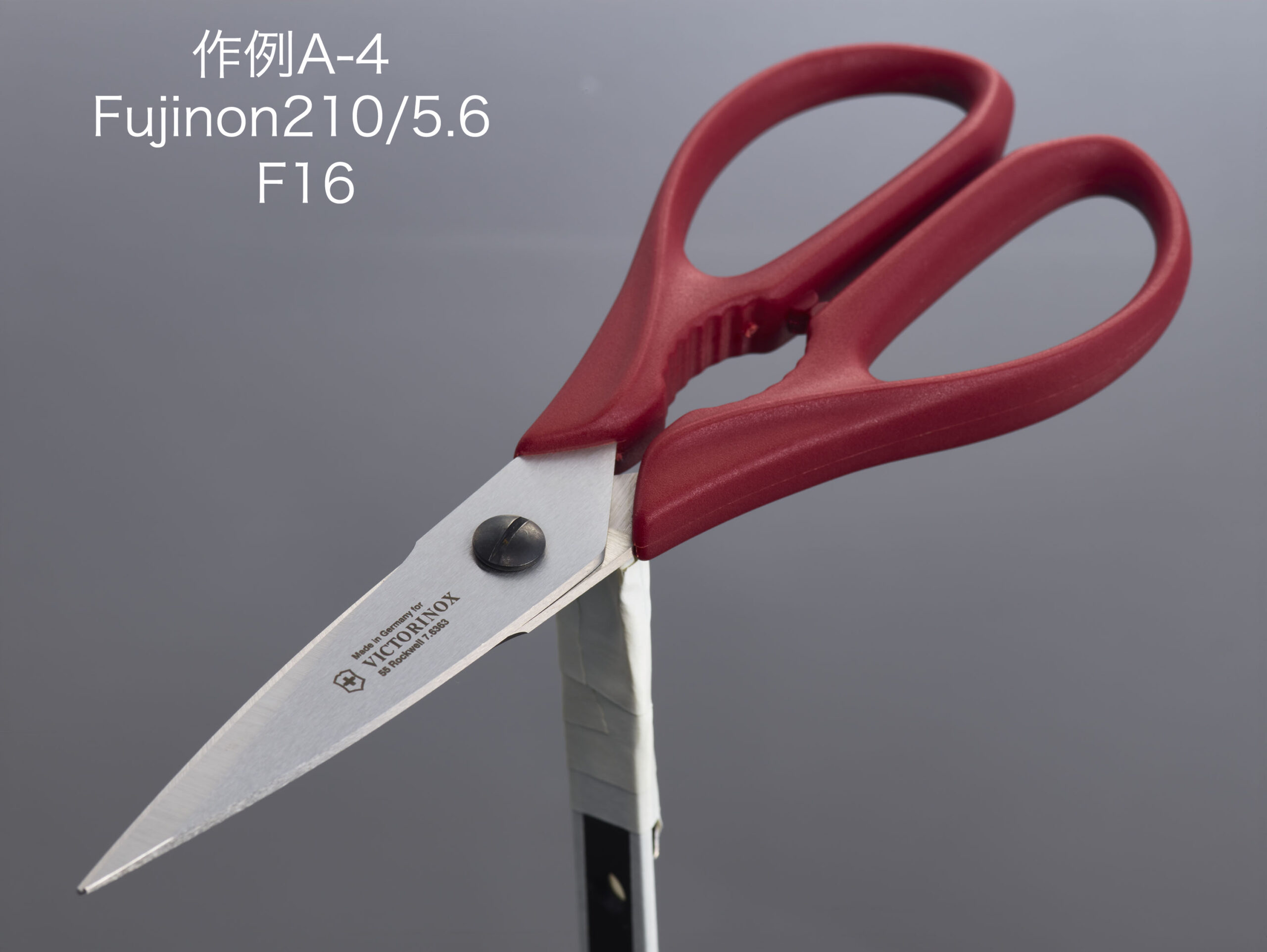 絞りはF16で撮影しています。全体に焦点がきています。全体にシャープネスも保たれています。ハサミを支えている仕掛けは画像処理で消去しました。